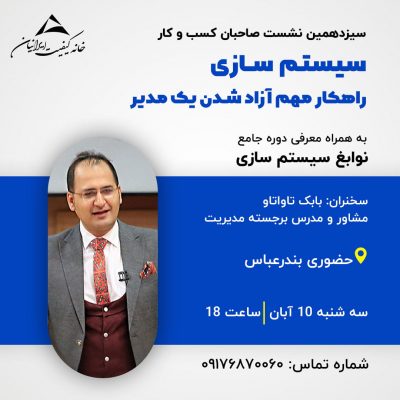 تاریخ برگزاری: ۱۴۰۳/۹/۲۲ ۱۰:۰۰