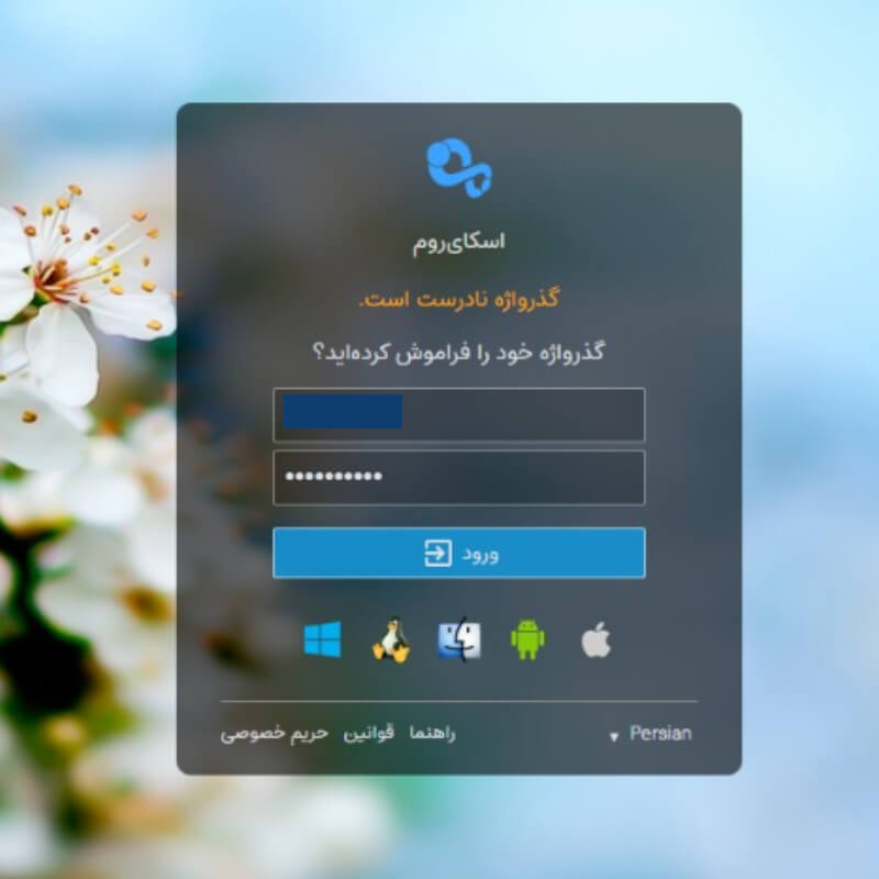 حتما هنگام ورود به کلاس در اسکای روم، نام کاربری و گذرواژه خود را با اعداد انگلیسی وارد کنید.